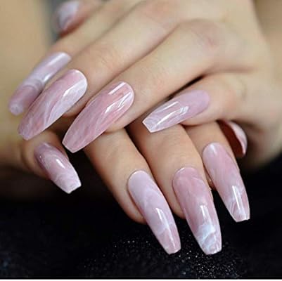 Natural False Nails French Fake Nails Extra Long Pink Marble Pressed Glossy Fake Nails Ballerina Bending Fake Nails Dating Holiday Wear Amazon Co Uk Beauty Naegel Rosa Grau Glitzer