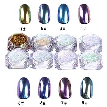 8 Farben Chrom Spiegel Nagel Puder Glatter Schimmer Glanzender Glitter Effekt Nagel Kunst Diy Amazon De Beauty Lange Spitze Naegel