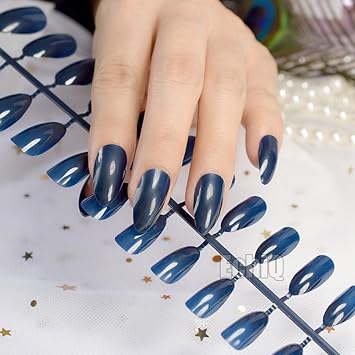 Echiq Dunkelblau Oval Sharp Ende Stiletto Nagel Tipps Full Cover Fake Kunstliche Nagel 24 Office Massives Pure Farbe Falsche Nagel Amazon De Beauty Rossmann Naegel