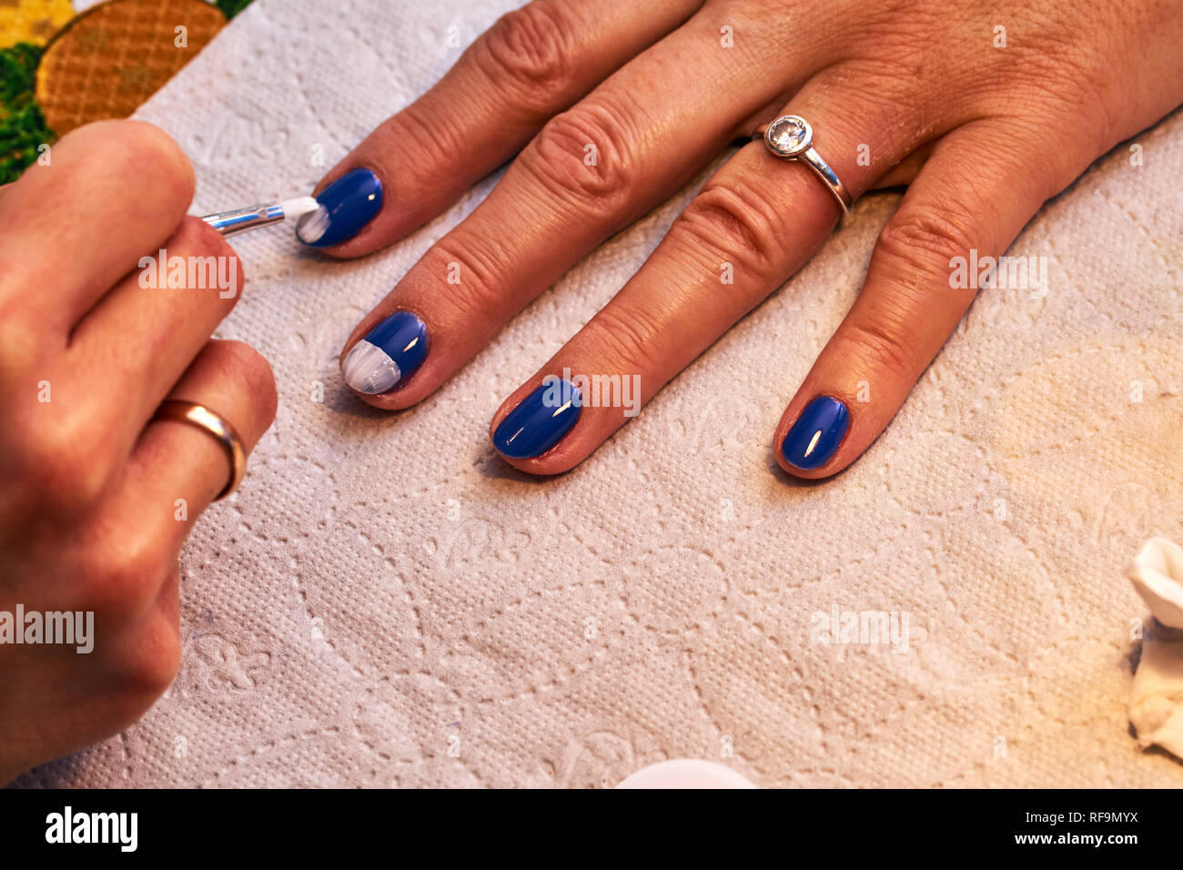 Fuer die hybrid manikuere braucht ihr. Fuer eine perfekte politur eine schicht nail lacquer auf die mitte des nagels auftragen gefolgt von einer schicht entlang jeder seite des nagels. Dieses system bietet intensiv leuchtende farben eine ausgleichende plumping textur und lange haltbarkeit.