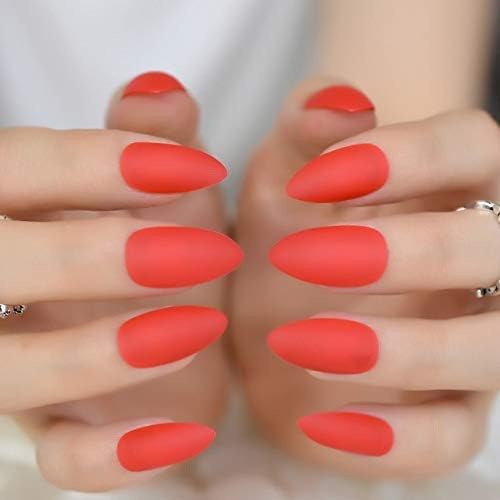 Plzjmm Fake Nails 24 Stucke Rot Matt Nagelspitzen Mandel Design Medium Sharp Stiletto Gefalschte Nagel Dame Taglichen Verschleiss Fur Make Up Tool 358 P Amazon Co Uk Beauty Kaputte Naegel Nach Gelnaegeln