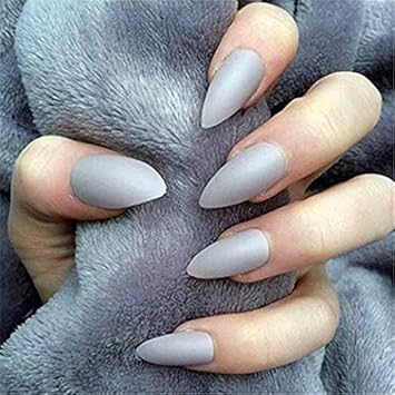 Bloomingboom Kunstliche Fingernagel Grosse L Mandel Spitz Zulaufend 24 Stuck 12 Grossen Vorgefertigtes Manikure Nail False Nail Tips Spitz Stilleto Mountain Peak Farbe Rein Hellgrau Amazon De Beauty Naegel Stuttgart