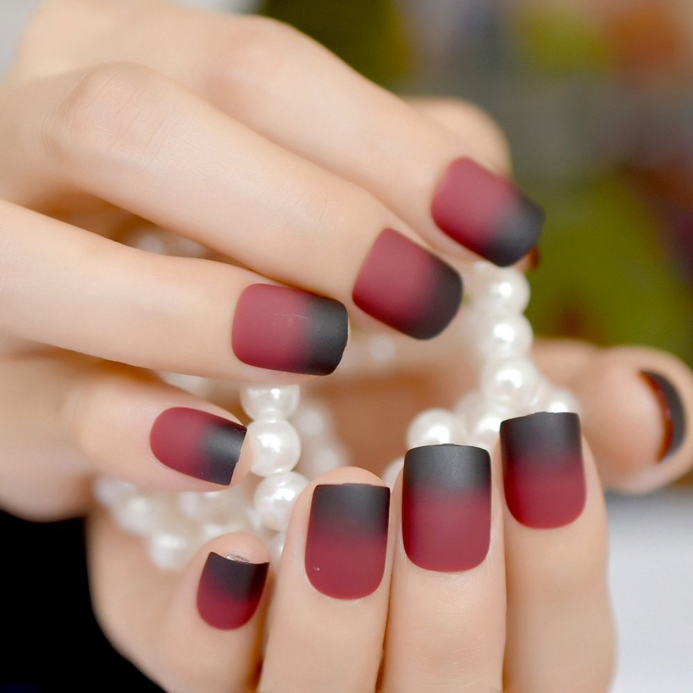 Farbverlauf Kurz French Nail Tipps Schwarz Wein Rot Rund Matt Design Kit Falsche Nagel Kunst Dekoration Fur Frauen Make Up Werkzeug Z858 Amazon De Beauty Haut Haare Naegel Dm