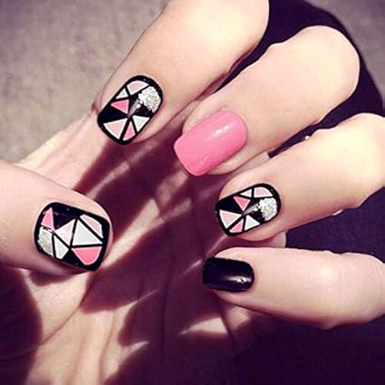 Plzjmm Fake Nails 24 Stucke Nette Rosa Farbe Drucken Auf Nagel Frauen Susse Schwarz Weiss Druck Gefalschte Nagel Kurze Grosse Full Cover Design Falsche Nagel Mit Kleber Amazon Co Uk Beauty Hammer Nagel
