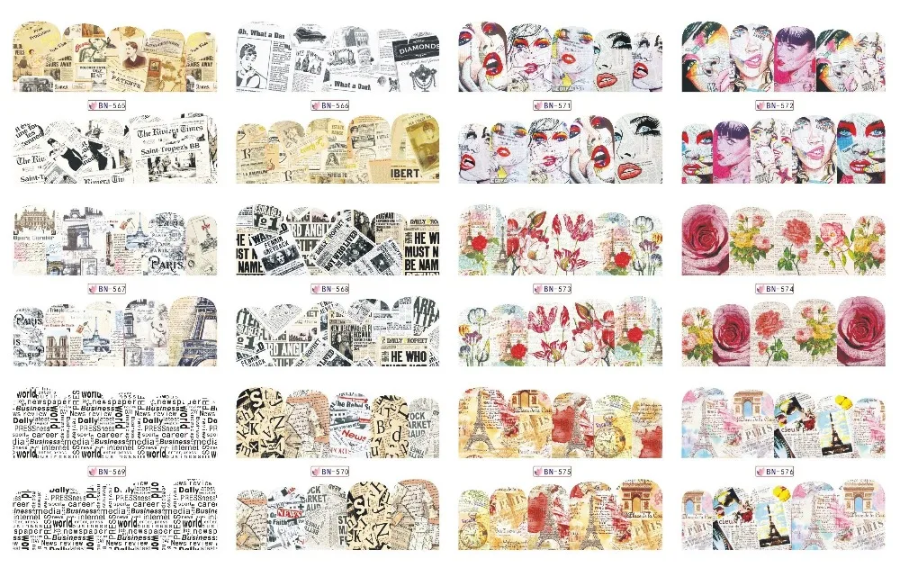 Uprettego 12 Packs Lot Nail Art Schonheit Wasser Aufkleber Slider Nagel Englisch Alte News Papier Kuss Lippen Blume Rose Bn565 576 Water Decals Lot Nail Artnail Art Aliexpress Shellac Naegel Kurz
