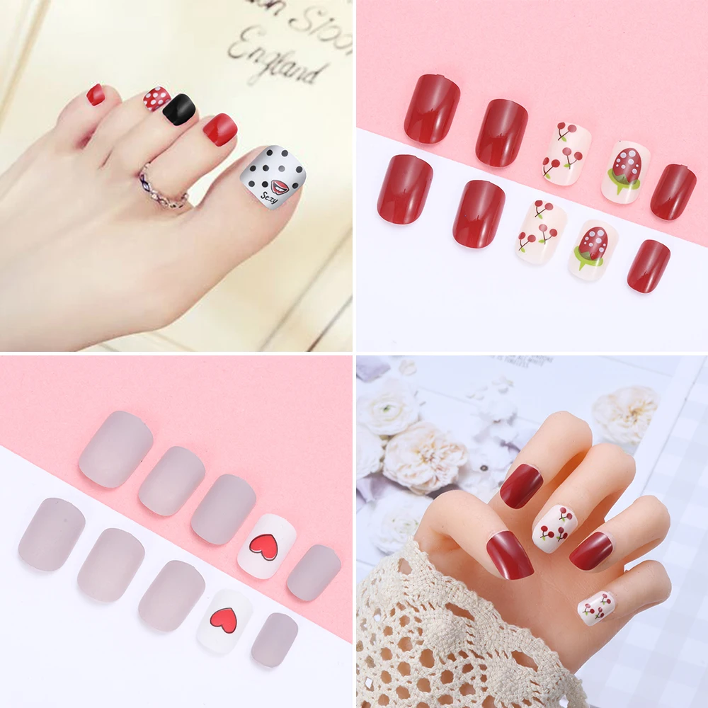 24pcs Frauen Matte Falsche Nagel Tipps Mit Kleber Matt Nude Schwarz Liebe Herz Kirsche Druck Valentinstag Tag Manikure Kappe Spitze Werkzeug Falsche Nagel Aliexpress Naegel 2019 Winter