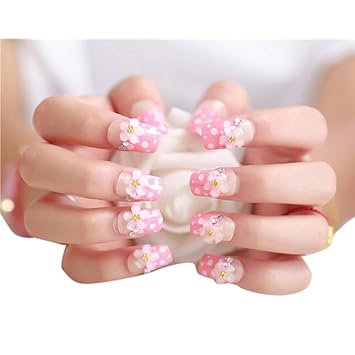 24 Stuck Romantische Weisse Kamelie Lange Kunstliche Falsche Nagel Faux Weisse Punkte Nagel Dekor Rosa Amazon De Beauty Spikes Naegel